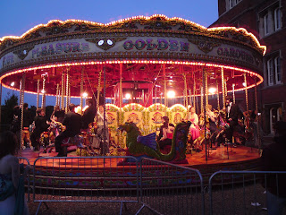 I was onstage at 1:30 am in the chapel. It was a good atmosphere, a space like that always is, but there was no microphone, so I ended up having to rely on my wits and my lungs to put on a good show that everyone could hear. I had to literally herd people forwards so that they could hear the guitar, because although a chapel has an amazing acoustic for voice, it's less good for guitar strings. I also walked among the crowd for some numbers, just cos I could. In some ways it's liberating not to be amplified, you have to invent new ways to involve the audience - talk to them a lot more, make more jokes, to keep their attention. Kind of like if you've ever seen a street performer keeping up a commentary while they juggle. It's to keep you watching whilst they prepare the trick, and make you focus more on what they're doing whilst they do it. I've watched quite a few street performers here in Cambridge, cos they come for the tourist dollar, and the best ones keep a flow of jokes and audience interaction going at all times. It's something I admire and have often tried to emulate.